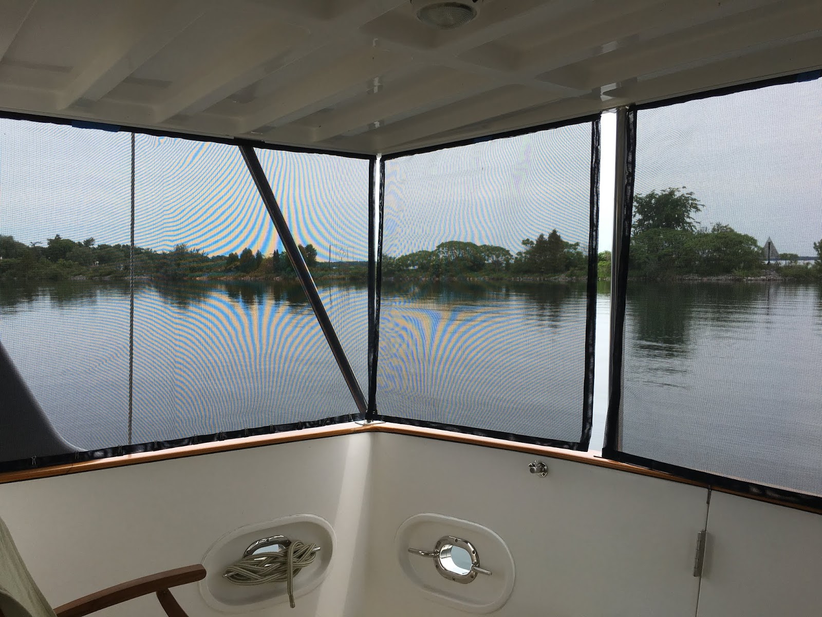 Today I decided would be a good day to work on our sun shades again. This was our free day at the marina and how many times can you walk the boat show? I was hoping to finish them but it looks like I will need one more day.